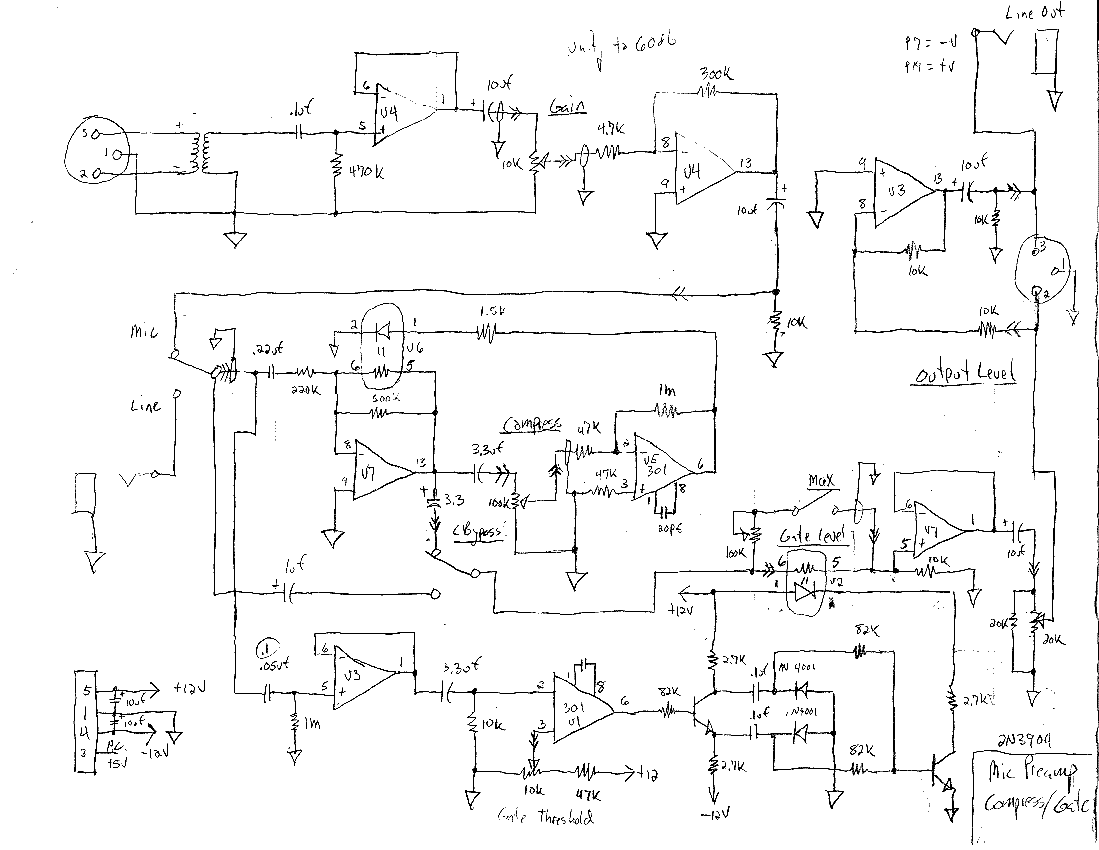 The "Blew Box" is a cheezy mic preamp that I built a few years back that includes a noise gate and a compressor. As I'm not much of an analog engineer, the design is largely based circuits from other gear and circuit books (Craig Anderton's Electronic Projects for Musicians, etc..) but I've found it useful. One of the interesting things about the preamp is the enclosure I used for it: the chassis for the old Lexicon 224 reverbs. I used an external "ELPak" power supply which provides +5V and +- 12v to simplify things. If you have any questions about the "Blew Box", send me some email. (Note the totally functionless graphics on the top. I'm not even sure why they're there. Makes it look like something important is going on I guess. )