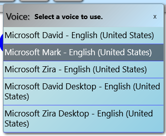 The Voice button opens a small panel that lets you pick a "speaker" for the voice synthesis; most browsers provide several to choose from.